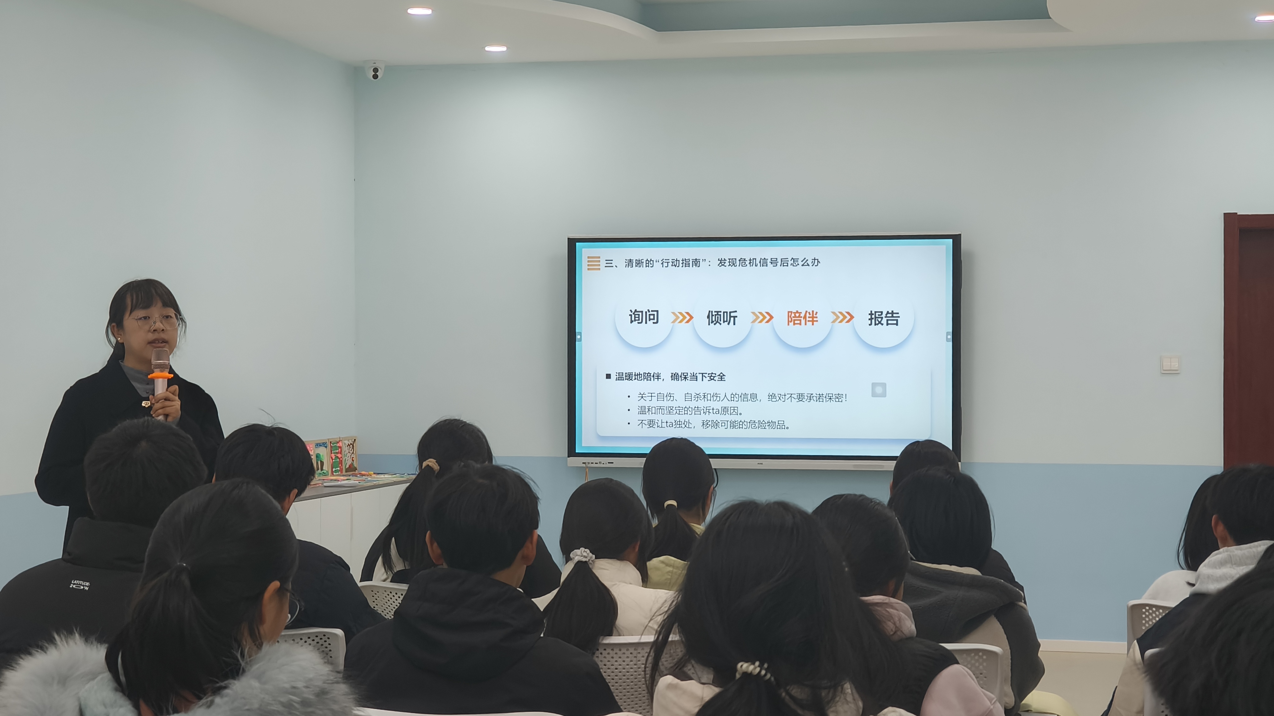 随后,她系统讲解了需要重点关注的人群、可能引发危机的高危场景,以及情绪、语言、行为等方面发出的危机信号。通过实例分析,心理委员们学习了怎样识别身边同学不易被察觉的“求助信号”。