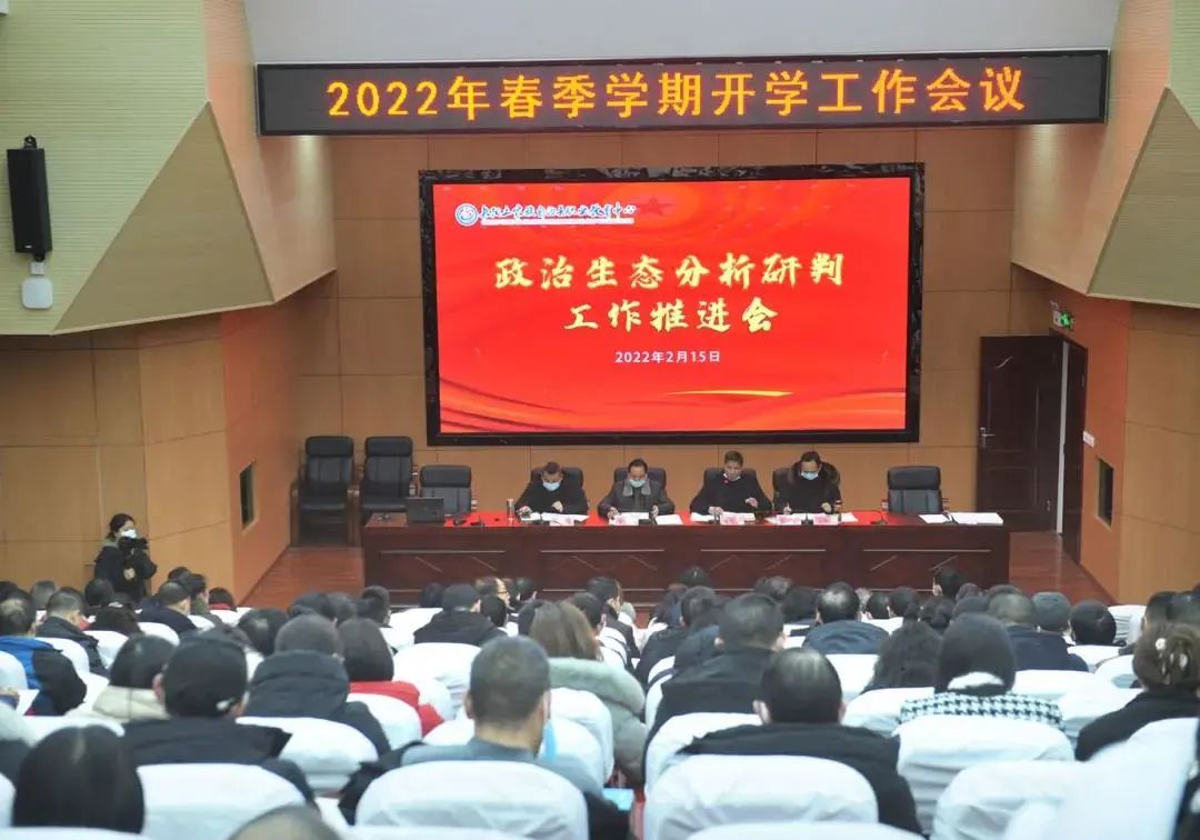 2月13日至2月15日,学校积极部署春季开学新冠疫情应急处置演练,分别召开第一次行政会、2022年春季学期开学和疫情防控工作评估验收筹备会、全体教职工开学工作会。分管领导就新学期工作部署明确思路,围绕“政治生态分析研判”和“湖北省双优学校创建”两大重点,对与会人员进行专题培训,以全局思维统筹谋划发展路径,明确时间节点,细化工作措施。教育局党组成员、校党委书记、校长张红昌勉励大家盯牢目标,抢抓机遇,主动营造风清气正的政治生态,主动融入学校高质量发展大局。