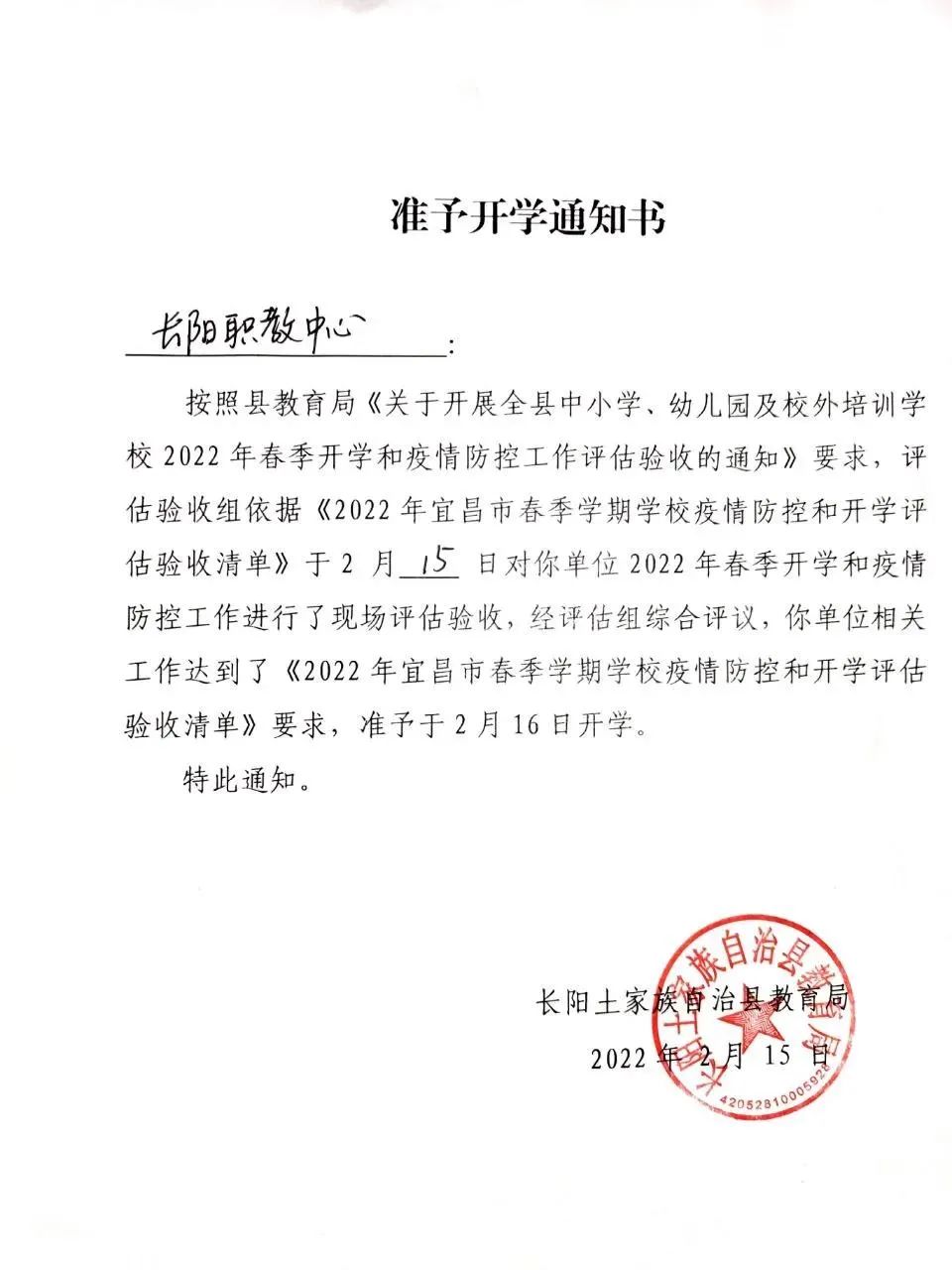 金牛辞岁千仓满,玉虎迎春百业兴。近日,长阳职教中心积极贯彻市、县教育局关于做好疫情防控和开学工作的指示精神,把握重点难点,对2022年春季学期开学工作进行周密部署,迎接开学。